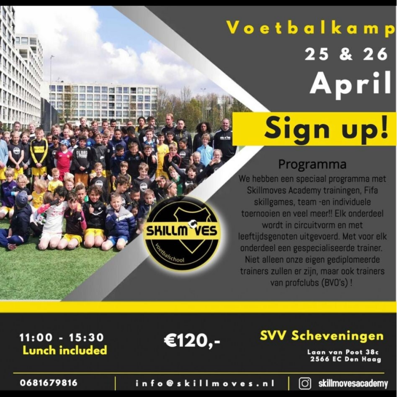 Op 25 en 26 april zal wederom het Skillmoves voetbalkamp plaatsvinden. Het programma bestaat o.a. uit Skillmoves Acadamy trainingen, FIFA skillgames, team- en individuele toernooien. Het kamp staat onder leiding van onze eigen trainers en trainers van BVO-clubs. Aanmelden kan bij trainer Bayram.